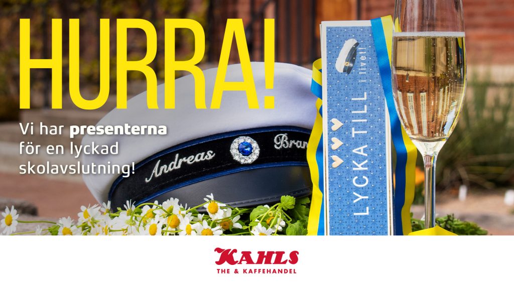 HURRA! Snart är det dags för en av årets höjdpunkter nämligen skolavslutningen! Hos oss hittar du smakfulla och personliga presenter – för elever och lärare. Välkommen till Kahls The & Kaffehandel!